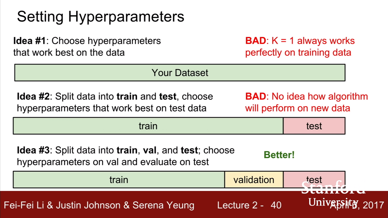 * Validation set: 최적화 위해 Hyperparameter Tuning에 사용